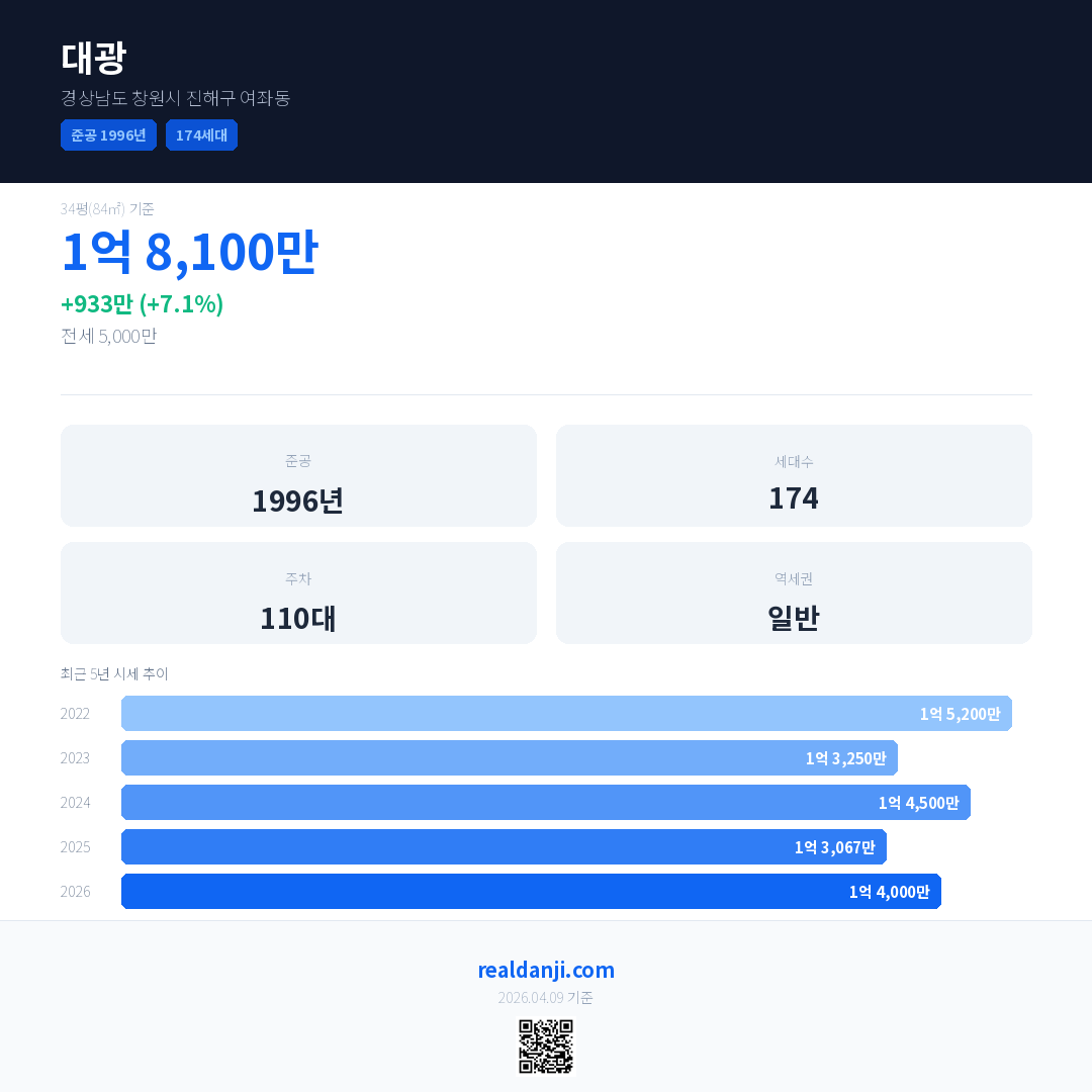대광 최근 거래가는 1억 8,100만입니다. (2026-03)