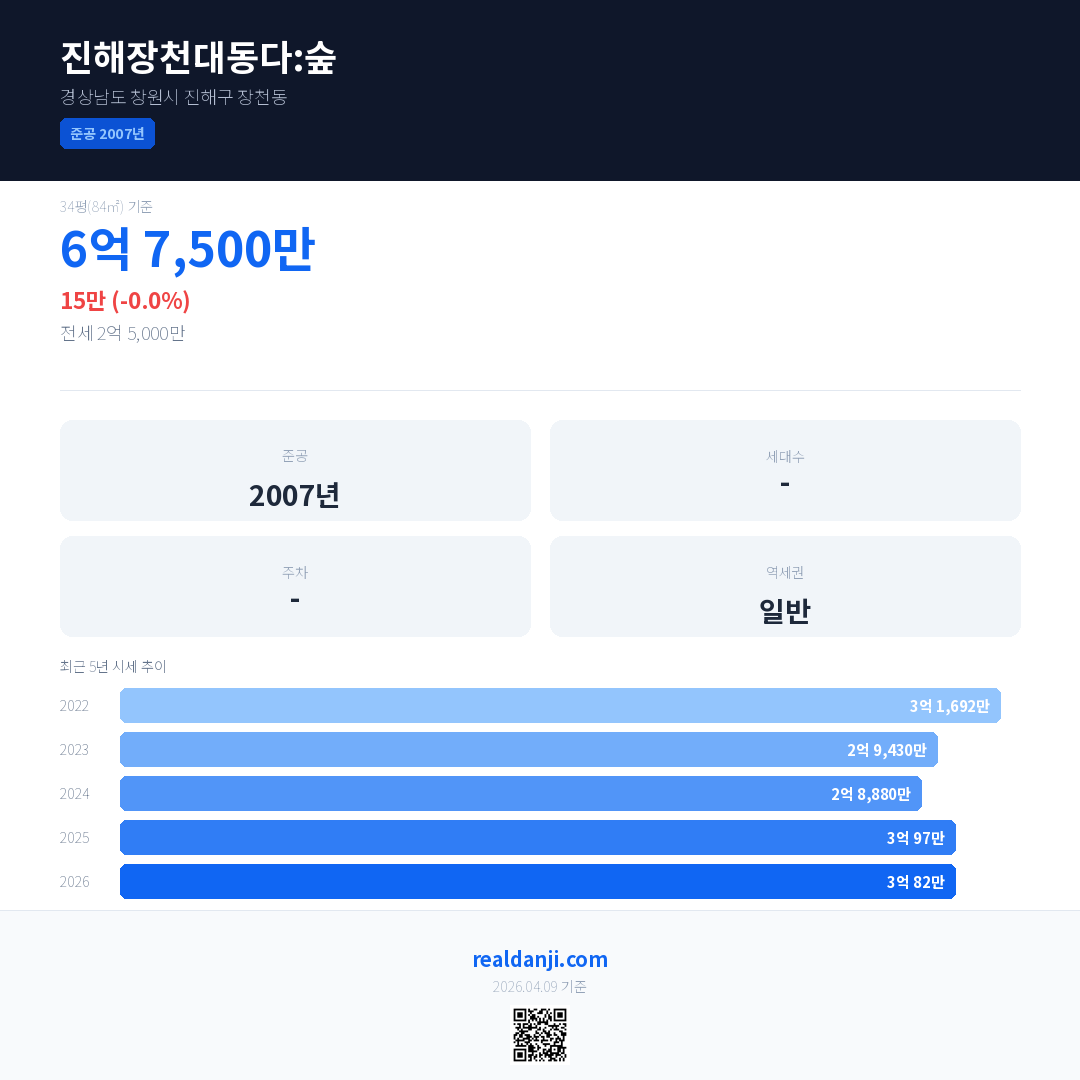 진해장천대동다:숲 최근 거래가는 6억 7,500만입니다. (2026-03)