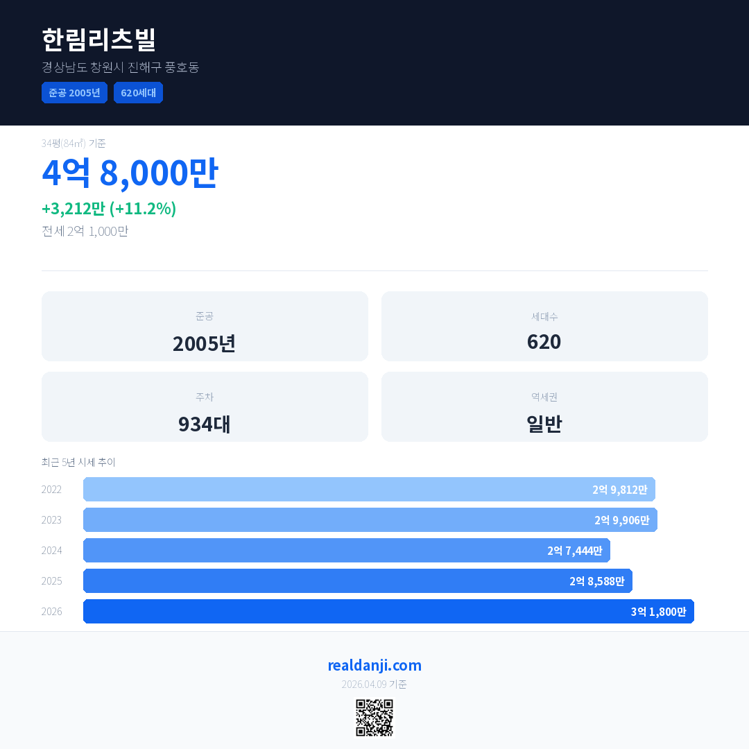 한림리츠빌 최근 거래가는 4억 8,000만입니다. (2026-03)