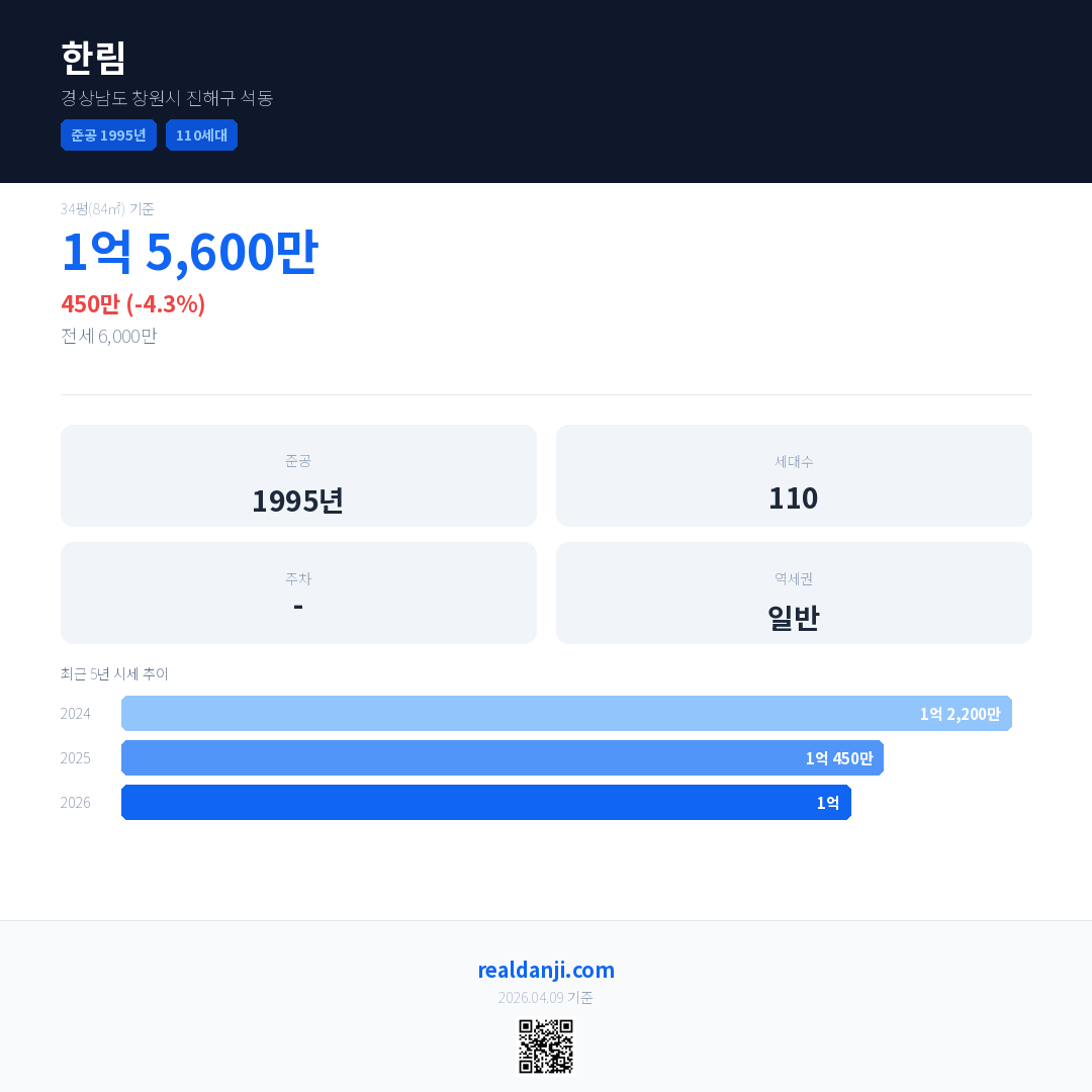 한림 최근 거래가는 1억 5,600만입니다. (2026-02)