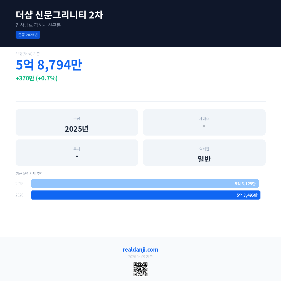 더샵 신문그리니티 2차 최근 거래가는 5억 8,794만입니다. (2026-03)