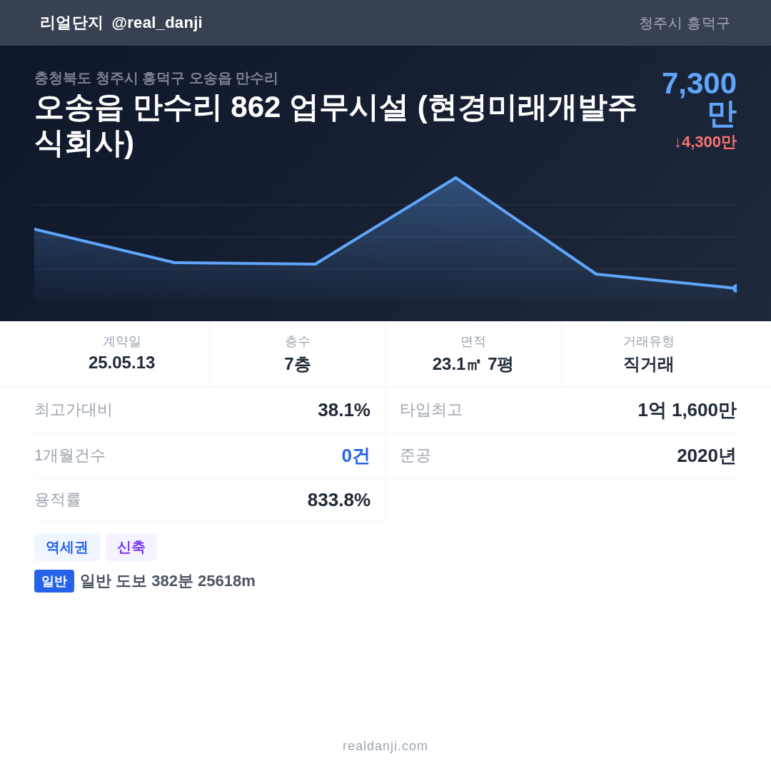 | 2025.05.13 | 23㎡ | 7층 | 7,300만 |