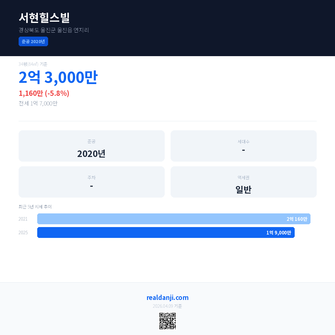 서현힐스빌 최근 거래가는 2억 3,000만입니다. (2025-03)