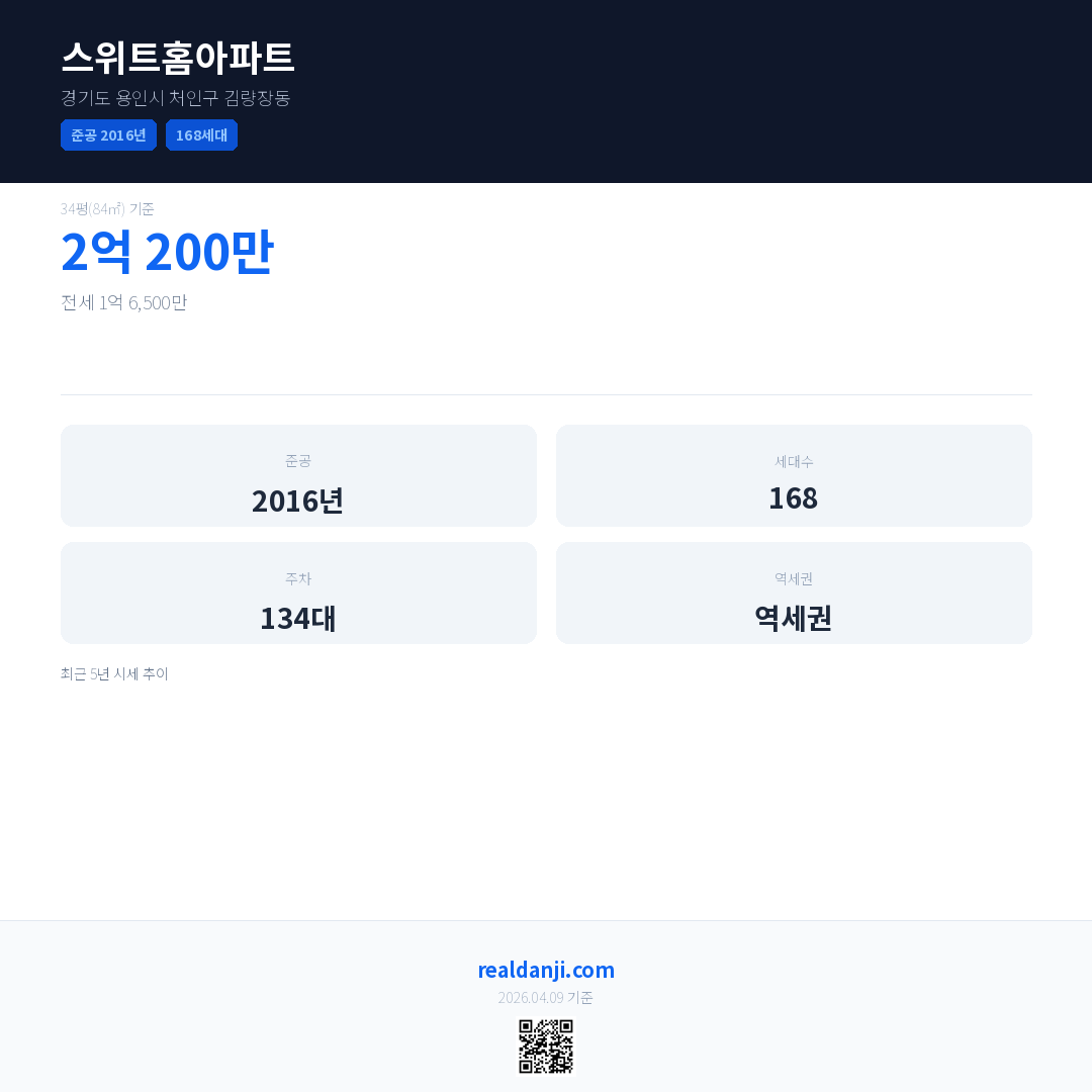 스위트홈아파트 최근 거래가는 2억 200만입니다. (2026-03)