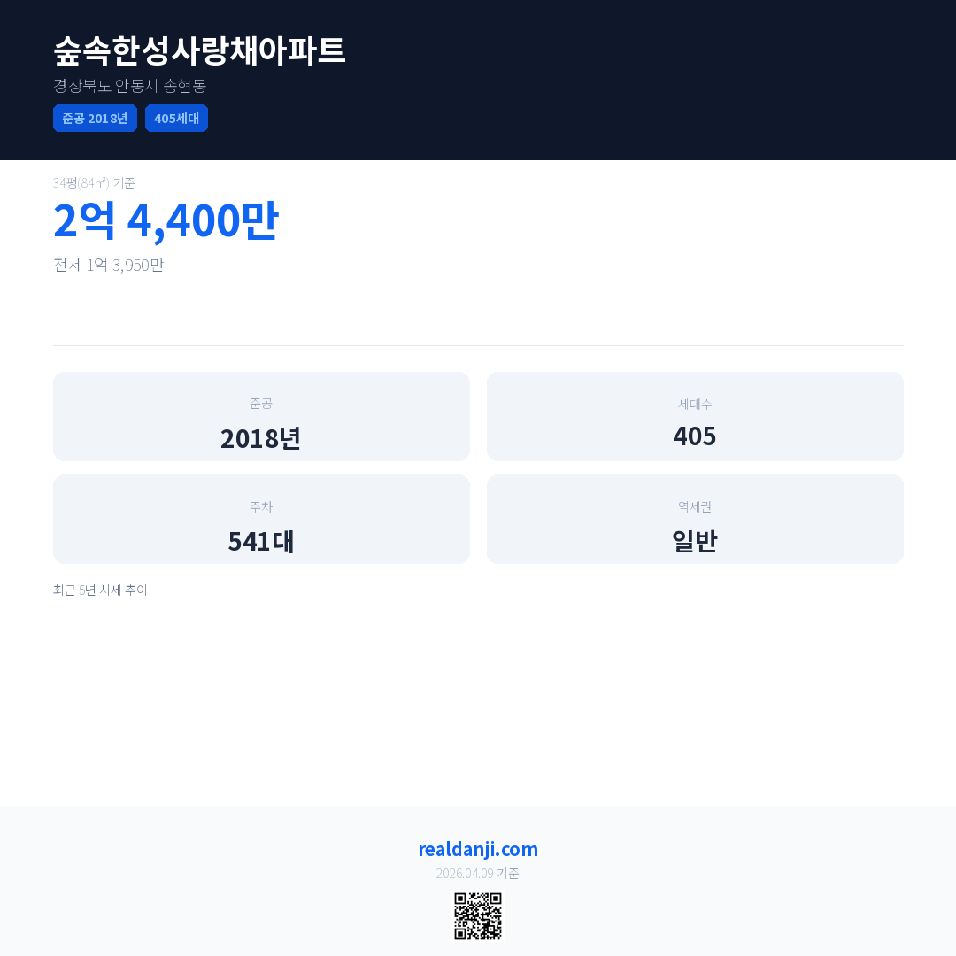숲속한성사랑채아파트 최근 거래가는 2억 4,400만입니다. (2026-03)