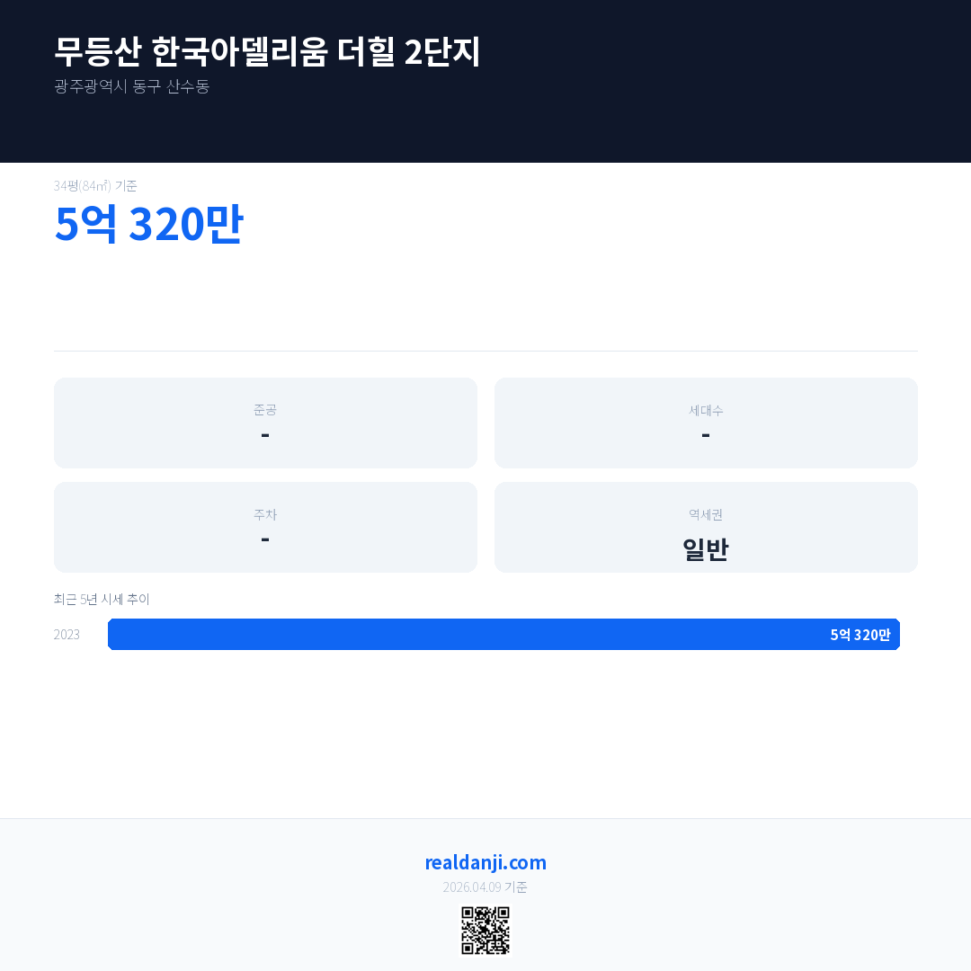 무등산 한국아델리움 더힐 2단지 최근 거래가는 5억 320만입니다. (2023-07)