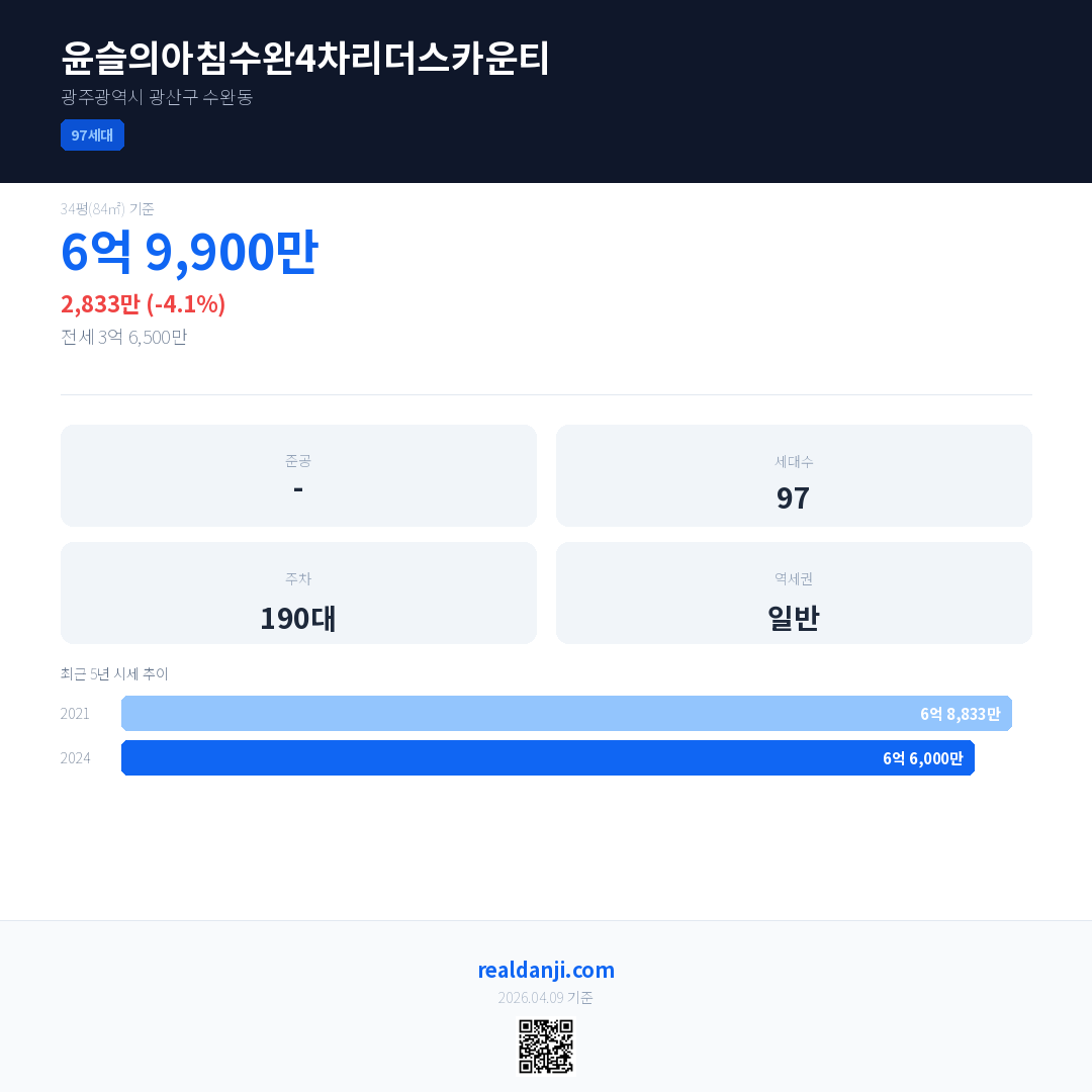 윤슬의아침수완4차리더스카운티 최근 거래가는 6억 6,000만입니다. (2024-10)
