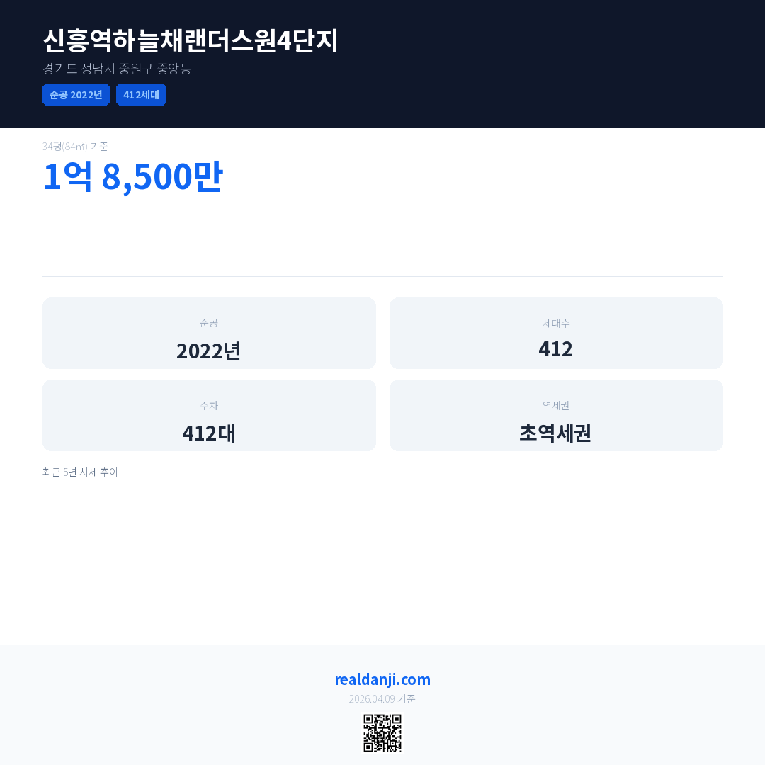 신흥역하늘채랜더스원4단지 최근 거래가는 1억 8,500만입니다. (2025-08)