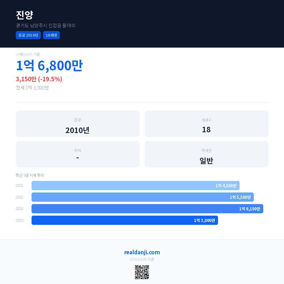 진양 최근 거래가는 1억 6,800만입니다. (2025-04)