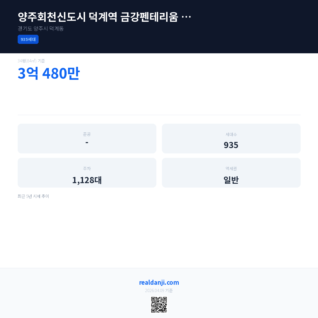 양주회천신도시 덕계역 금강펜테리움 센트럴파크(A-22BL) 최근 거래가는 3억 480만입니다. (2023-07)