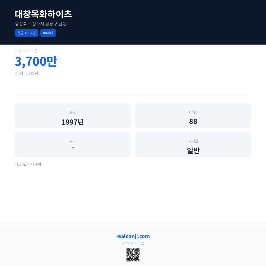 대창목화하이츠 최근 거래가는 3,700만입니다. (2023-12)