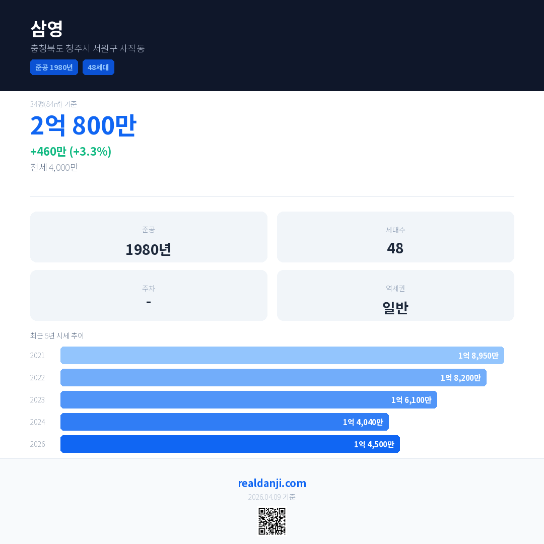 삼영 최근 거래가는 2억 800만입니다. (2026-03)