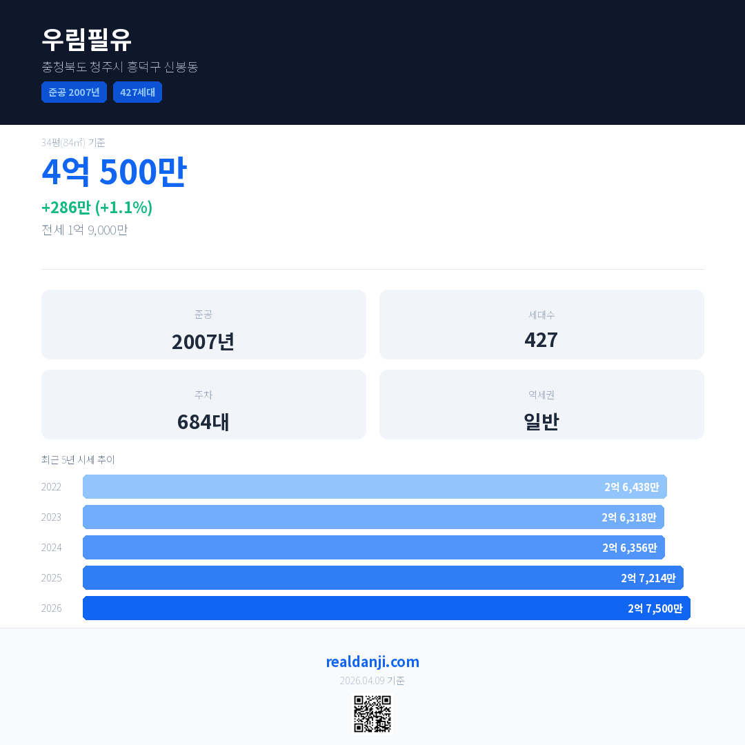 우림필유 최근 거래가는 4억 500만입니다. (2026-01)