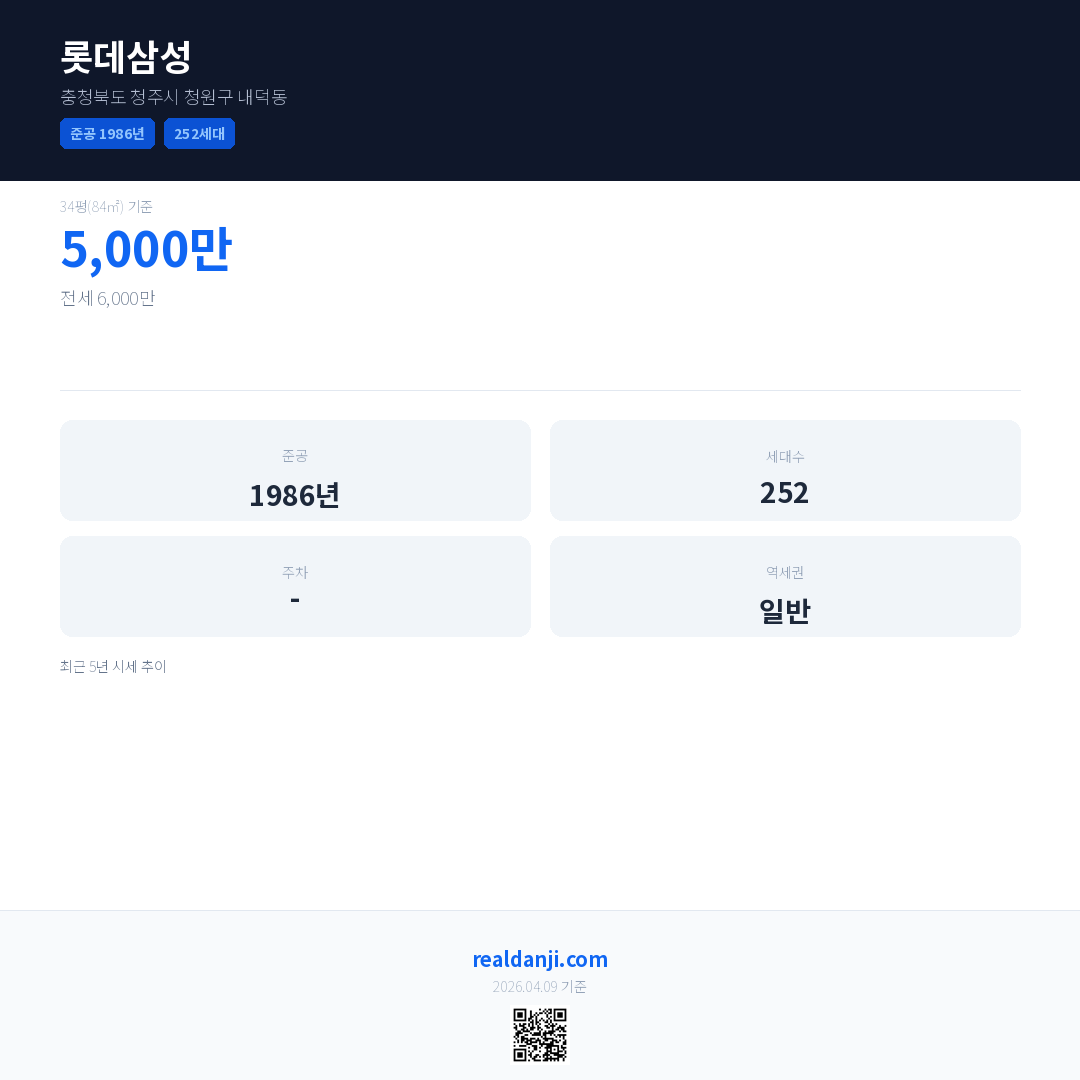 롯데삼성은(는) 1986년에 준공되었으며, 현재 40년차입니다. 총 252세대 규모입니다.