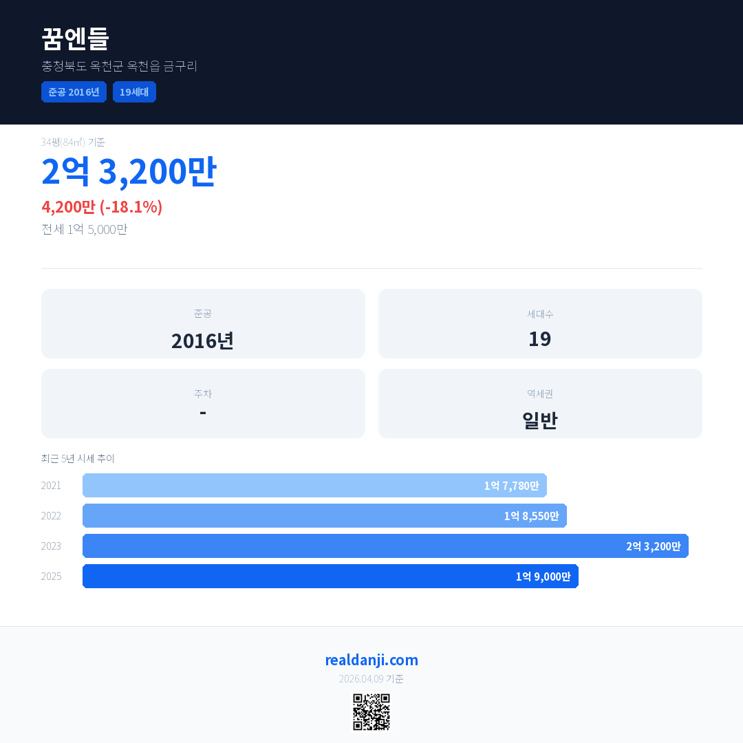 꿈엔들 최근 거래가는 1억 9,000만입니다. (2025-05)