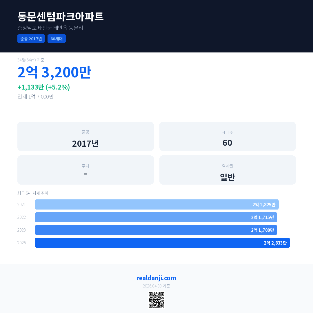동문센텀파크아파트 국민평형 기준 2025년 평균 거래가는 2억 2,833만으로, 전년 대비 5.2% 상승 했습니다.