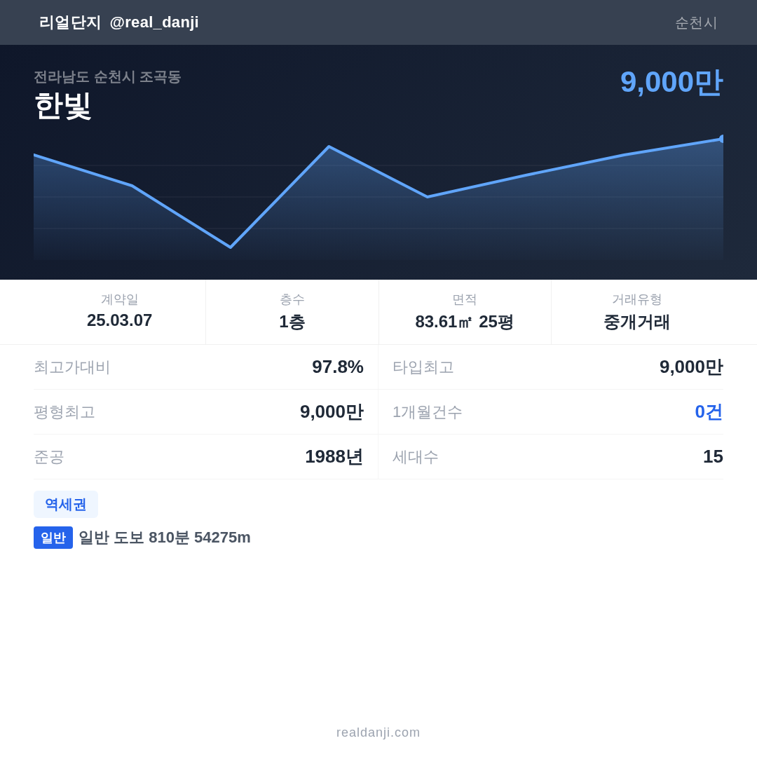 한빛 최근 거래가는 9,200만입니다. (2025-03)