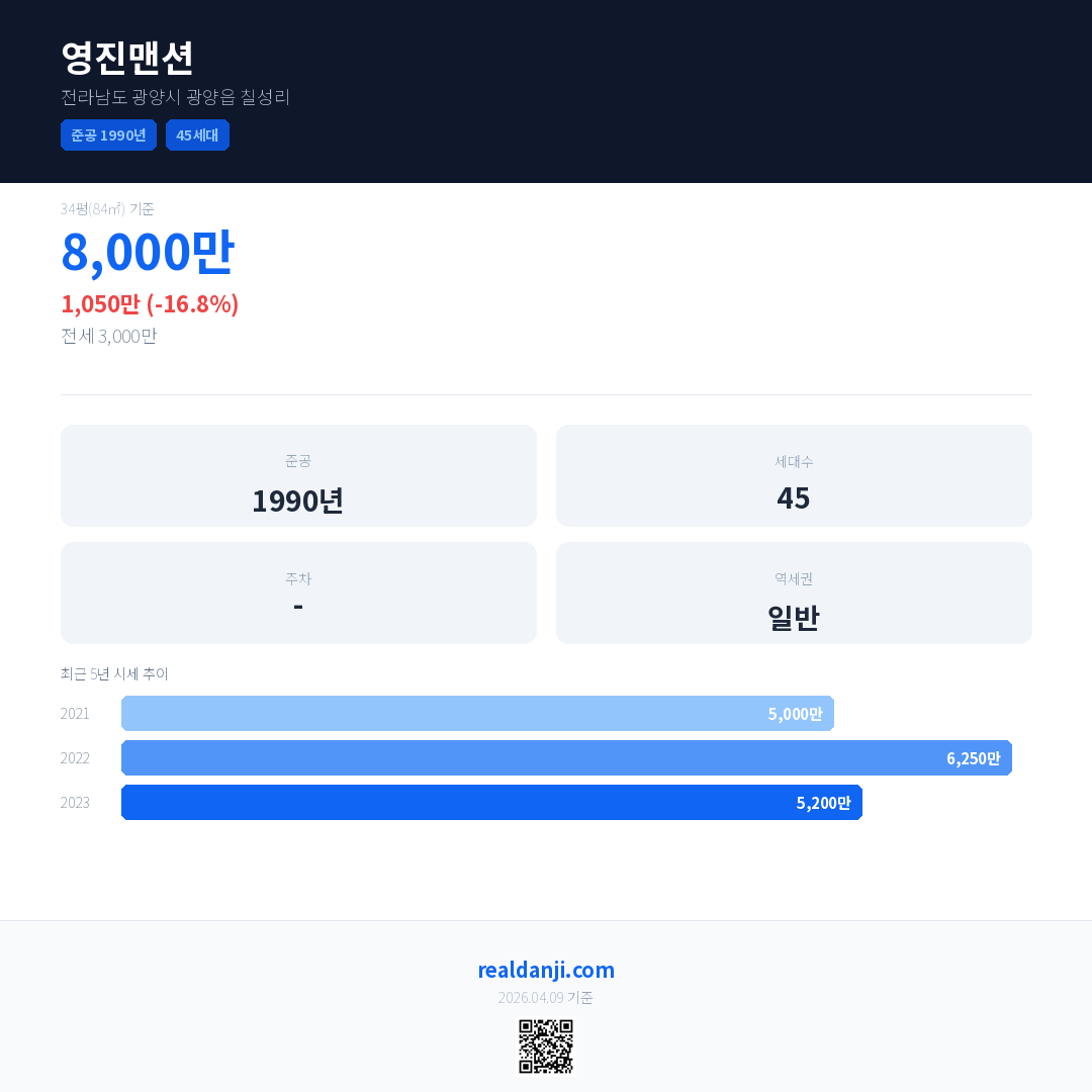 영진맨션 최근 거래가는 8,000만입니다. (2025-11)