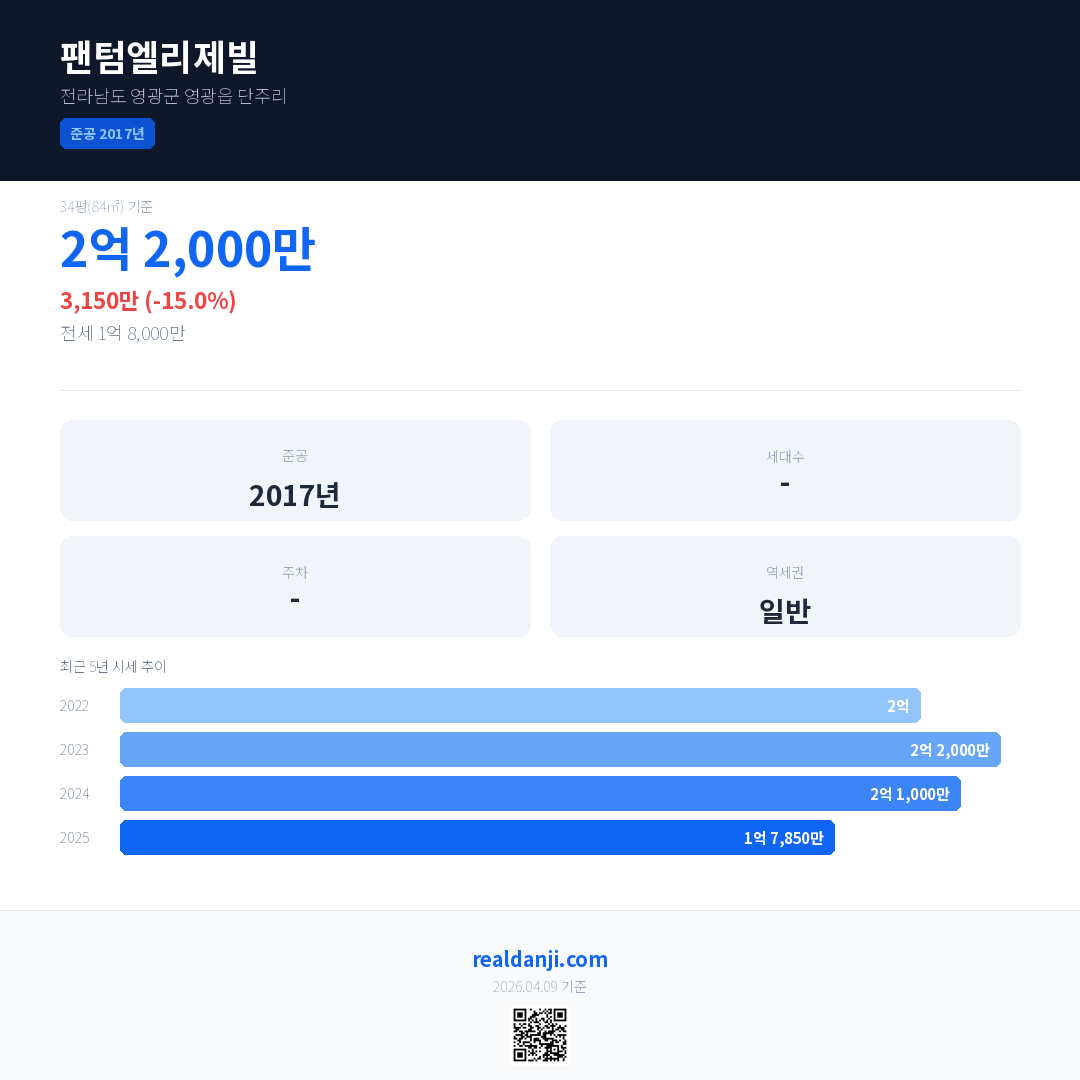 팬텀엘리제빌 최근 거래가는 2억 2,000만입니다. (2025-08)