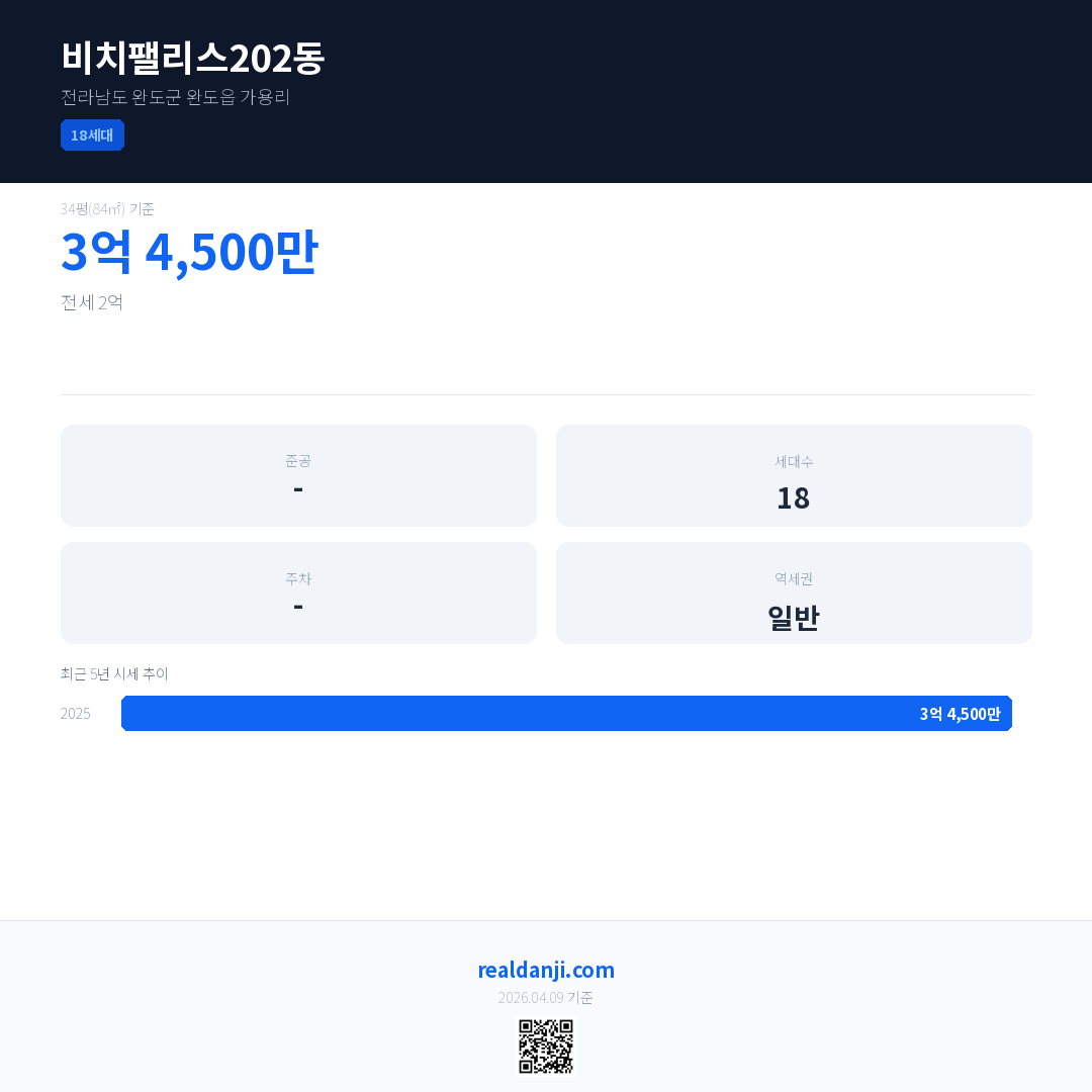 비치팰리스202동 최근 거래가는 3억 4,500만입니다. (2025-12)