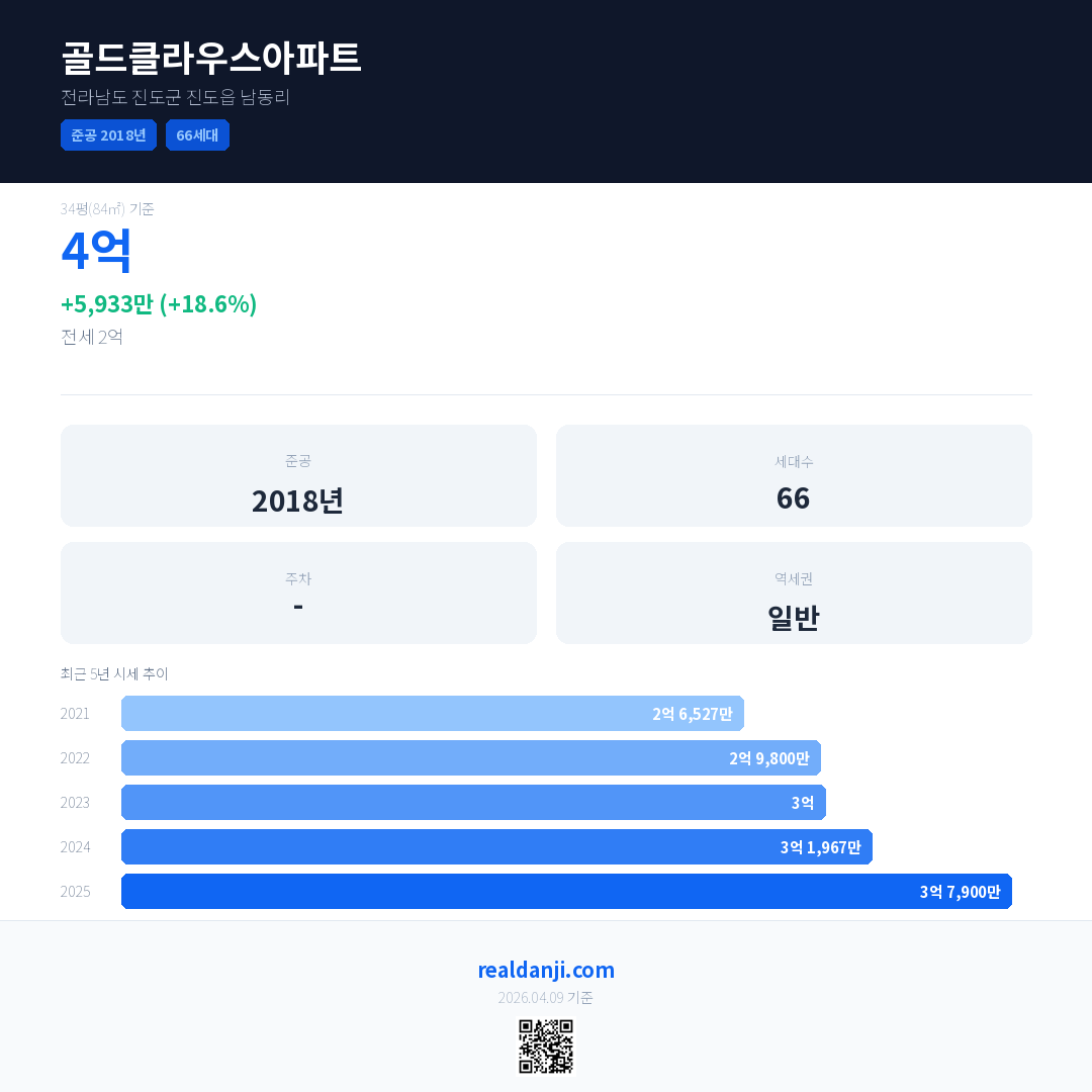 골드클라우스아파트 국민평형 기준 2025년 평균 거래가는 3억 7,900만으로, 전년 대비 18.6% 상승 했습니다.