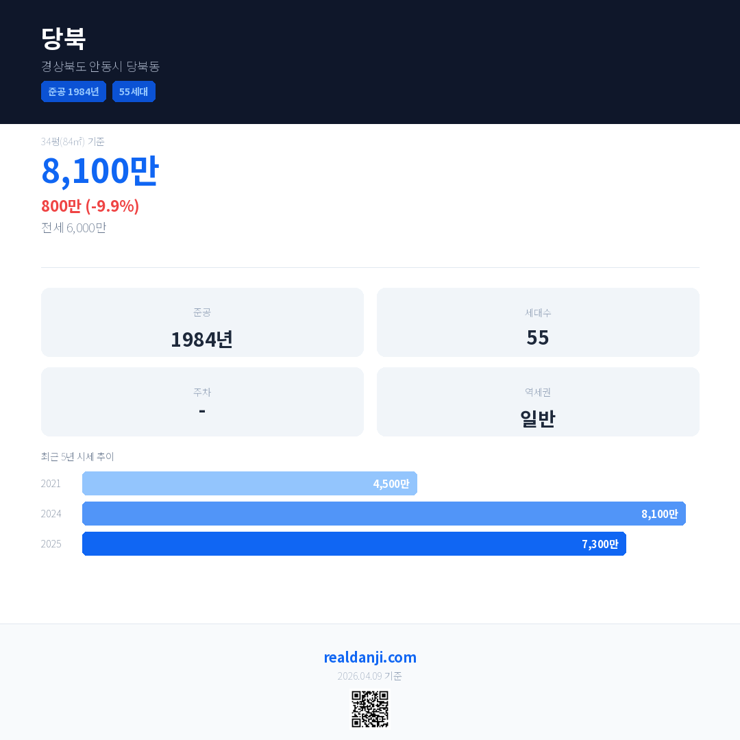 당북은(는) 1984년에 준공되었으며, 현재 42년차입니다. 총 55세대 규모입니다.