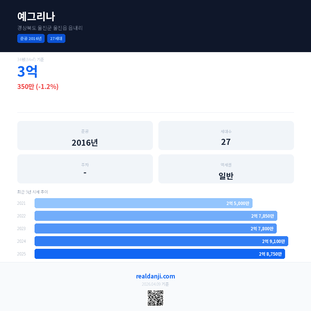 예그리나 최근 거래가는 3억입니다. (2025-05)