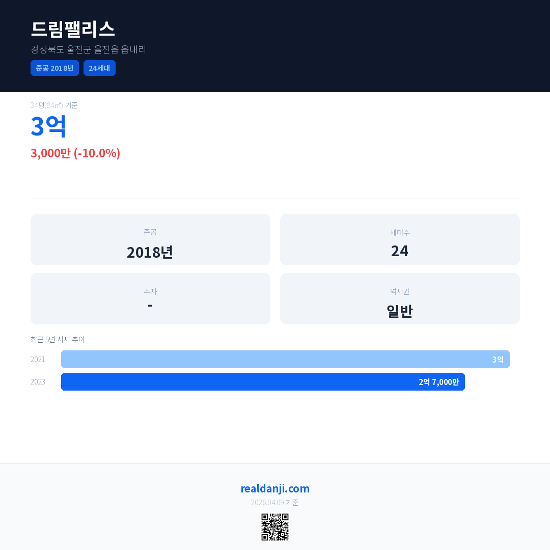 드림팰리스 최근 거래가는 3억입니다. (2024-01)