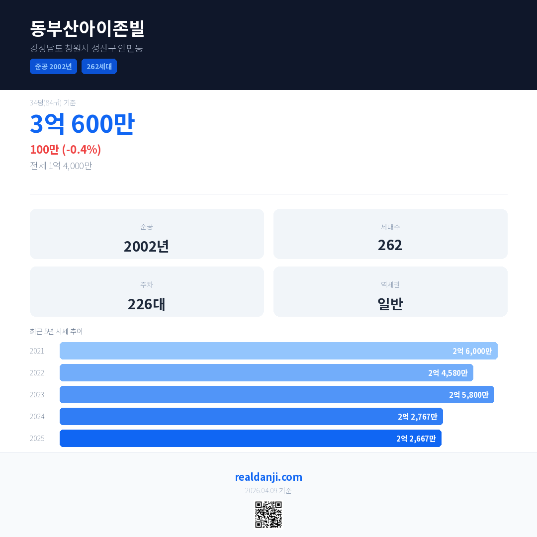 동부산아이존빌 최근 거래가는 3억 600만입니다. (2026-03)