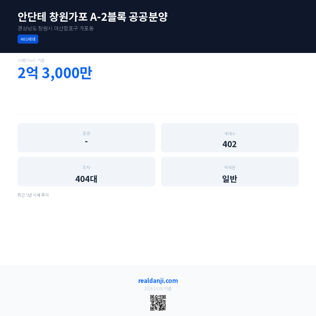 안단테 창원가포 A-2블록 공공분양 최근 거래가는 2억 3,000만입니다. (2026-03)