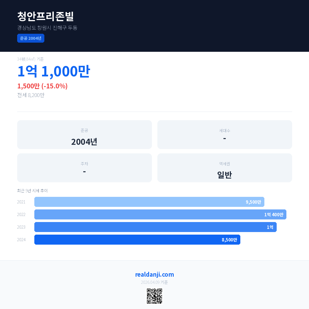 청안프리존빌 최근 거래가는 1억 1,000만입니다. (2024-04)