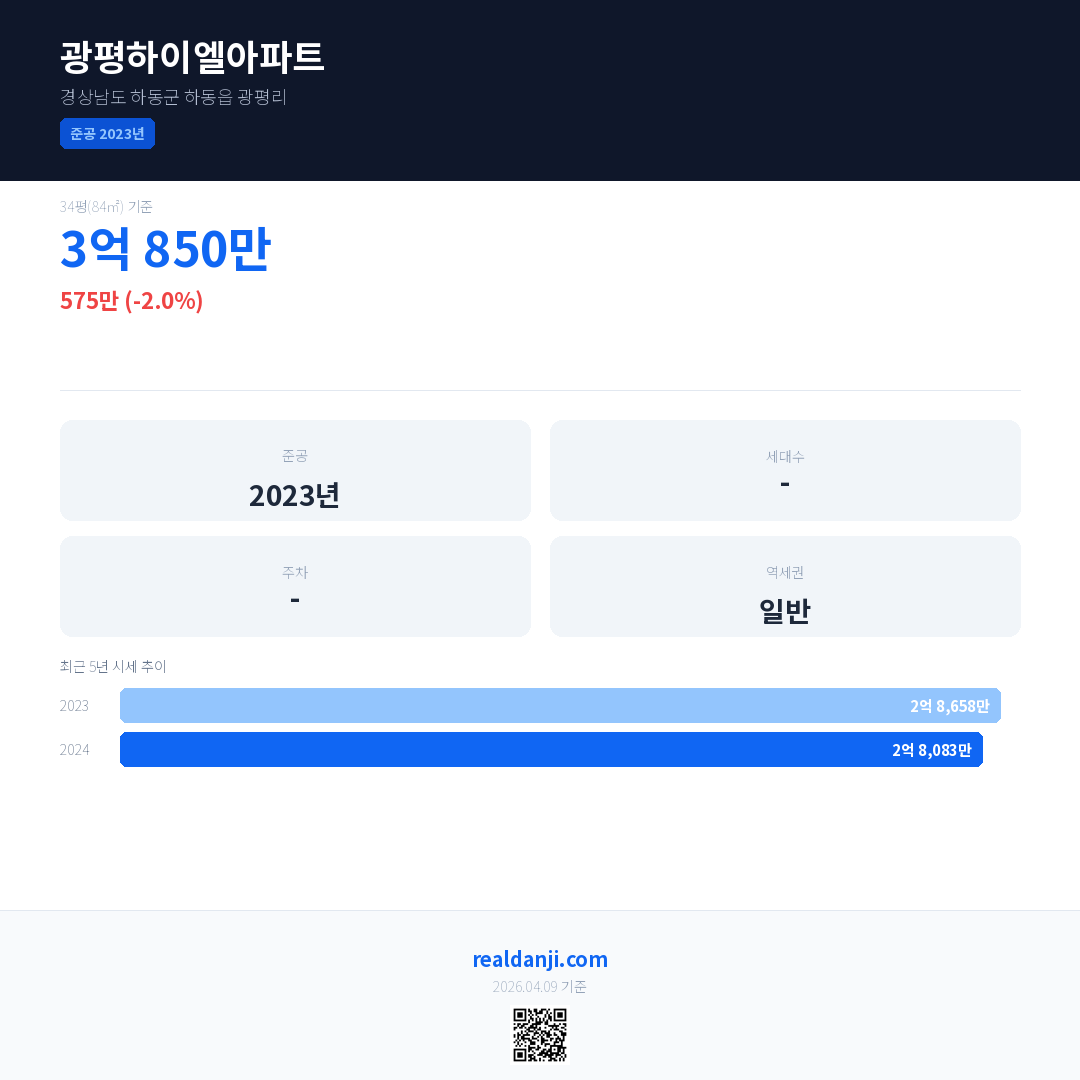 광평하이엘아파트은(는) 2023년에 준공되었으며, 현재 3년차입니다.
