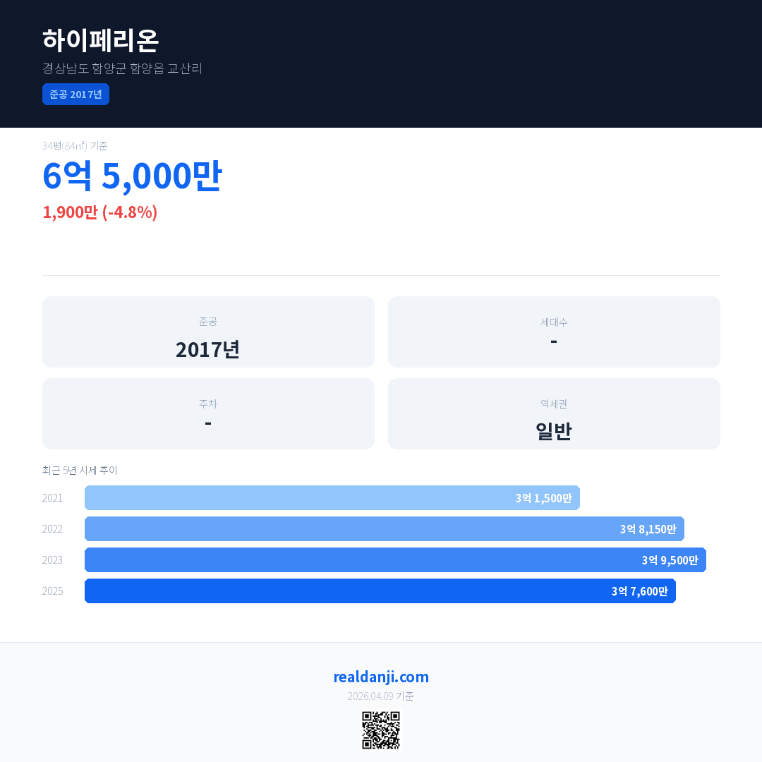하이페리온 국민평형 기준 2025년 평균 거래가는 3억 7,600만으로, 전년 대비 4.8% 하락 했습니다.