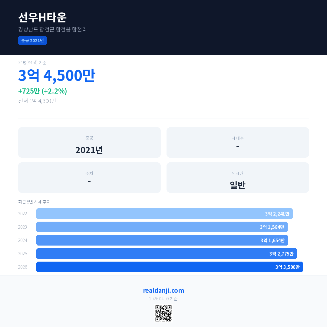 선우H타운 최근 거래가는 3억 3,500만입니다. (2026-03)