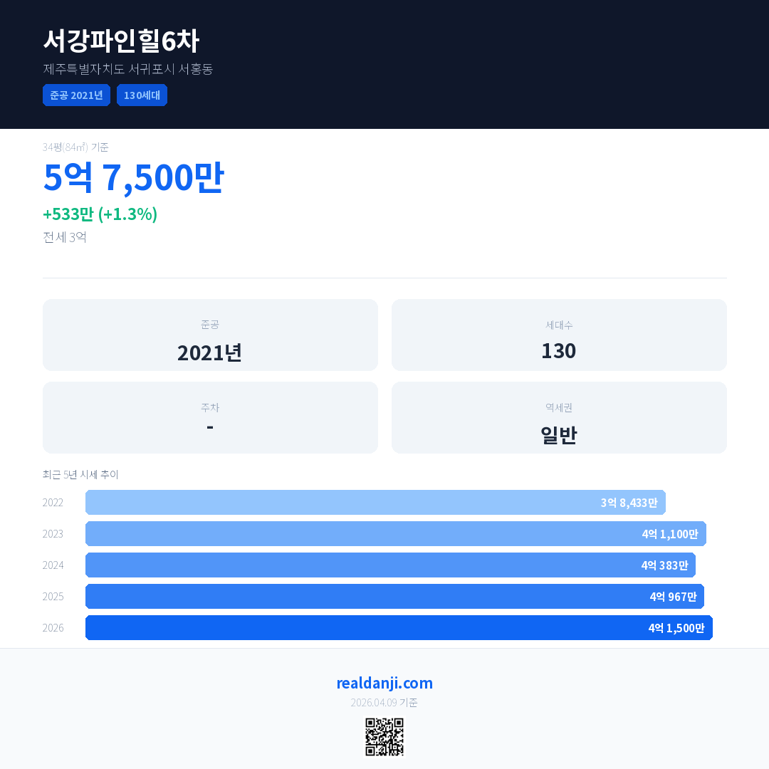 서강파인힐6차 최근 거래가는 5억 7,500만입니다. (2026-04)