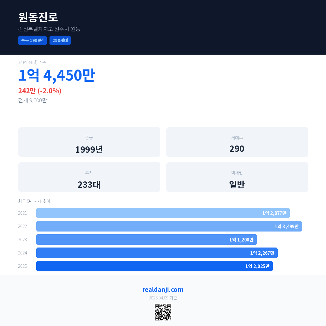 원동진로 최근 거래가는 1억 4,450만입니다. (2025-11)