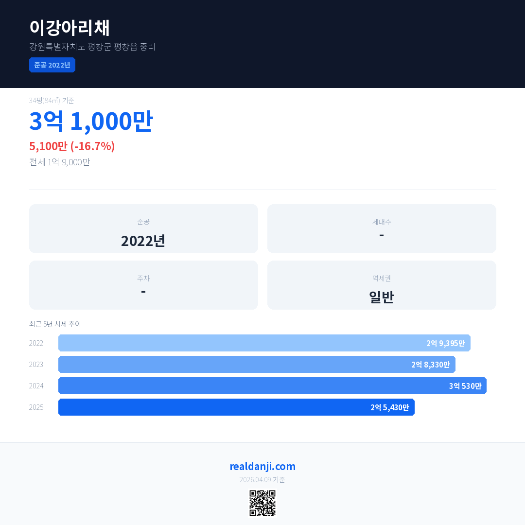 이강아리채 최근 거래가는 3억 1,000만입니다. (2025-12)