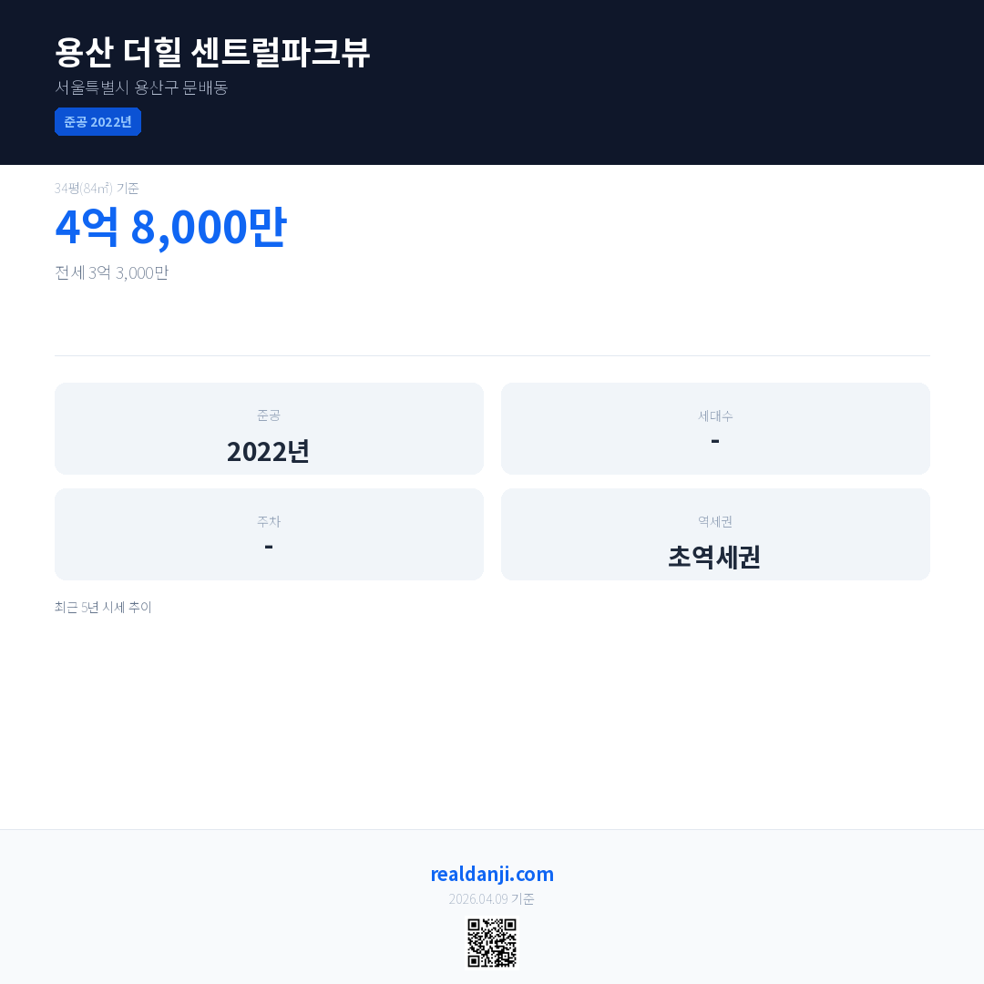 용산 더힐 센트럴파크뷰은(는) 2022년에 준공되었으며, 현재 4년차입니다.