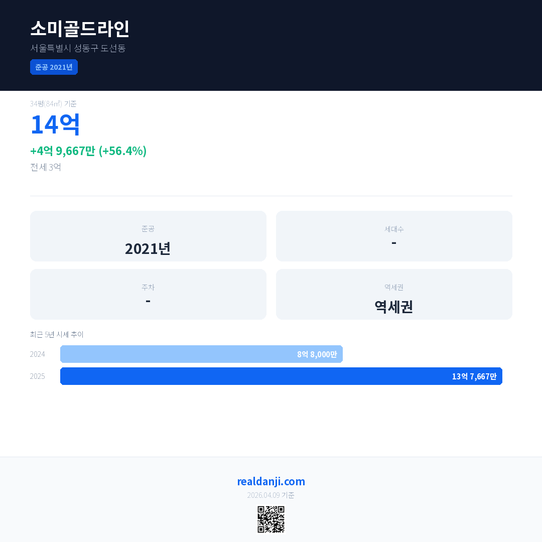 소미골드라인 최근 거래가는 14억입니다. (2025-09)