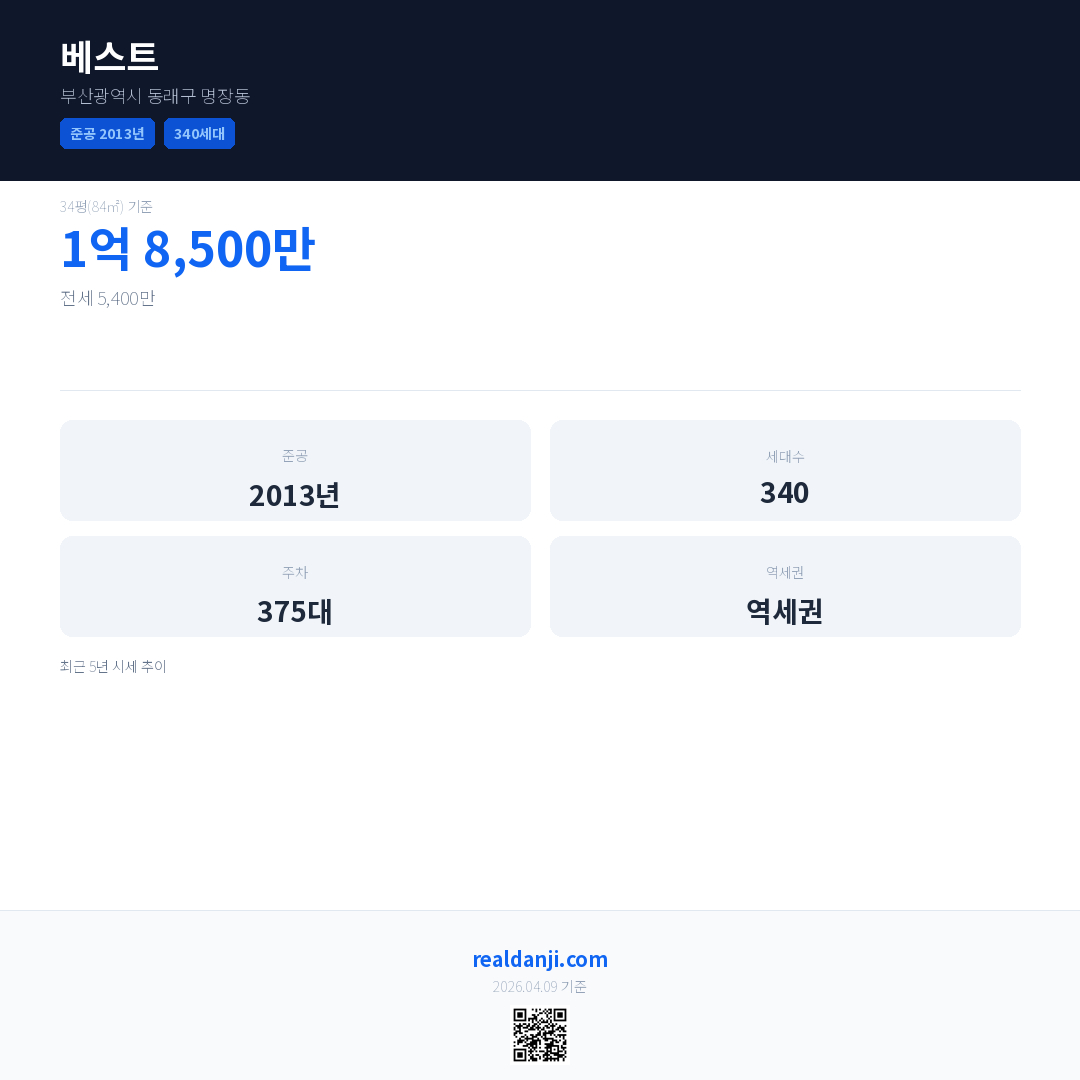 베스트 최근 거래가는 1억 8,500만입니다. (2026-02)