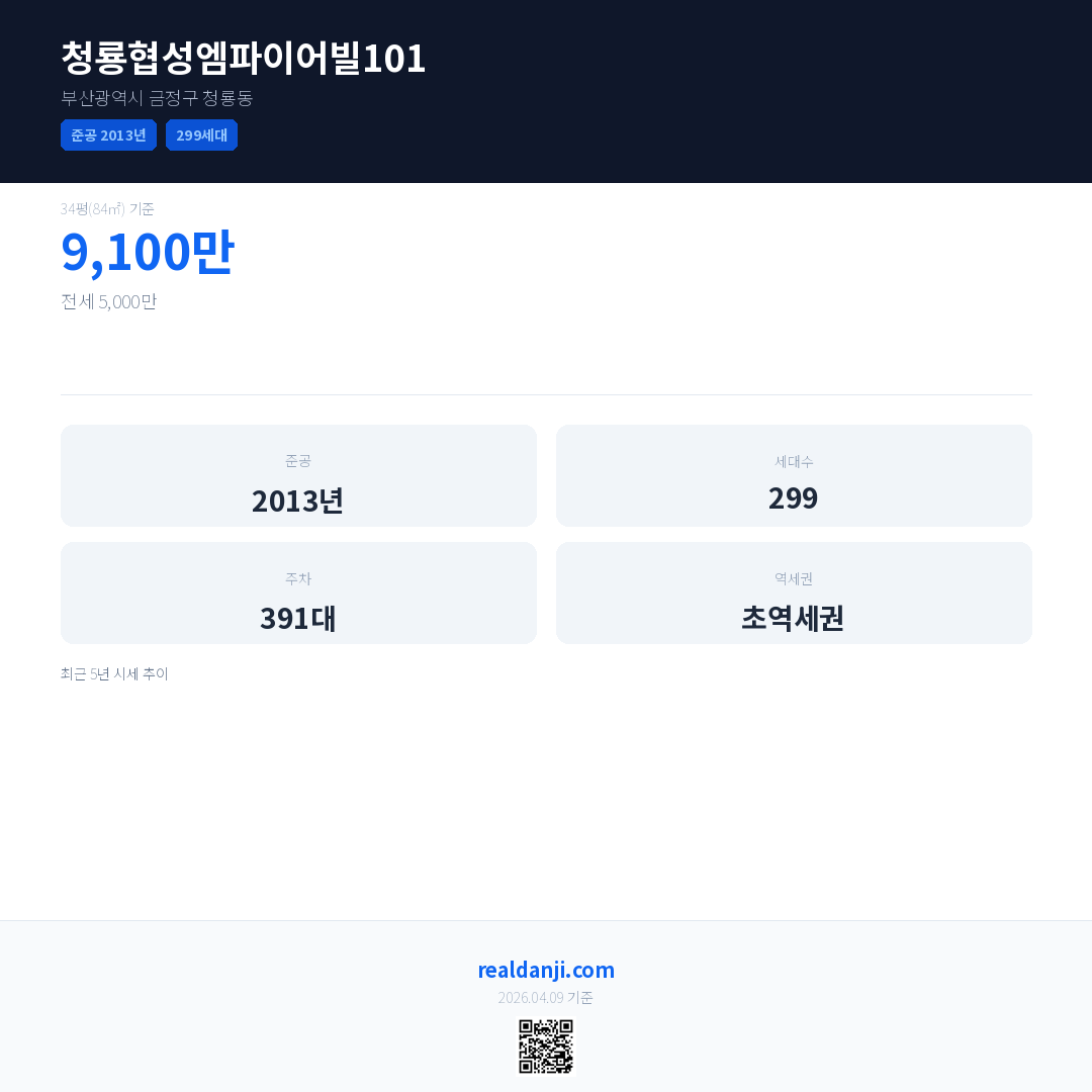 청룡협성엠파이어빌101 최근 거래가는 9,100만입니다. (2026-02)