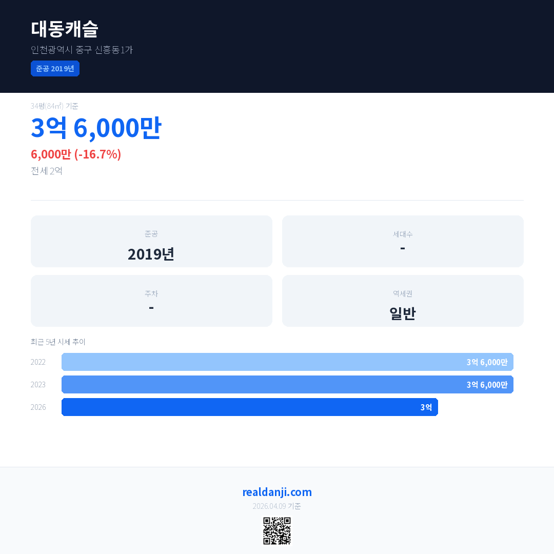 대동캐슬 국민평형 기준 2026년 평균 거래가는 3억으로, 전년 대비 16.7% 하락 했습니다.