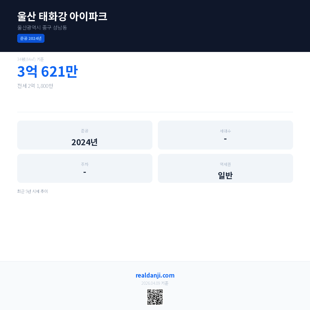 울산 태화강 아이파크은(는) 2024년에 준공되었으며, 현재 2년차입니다.