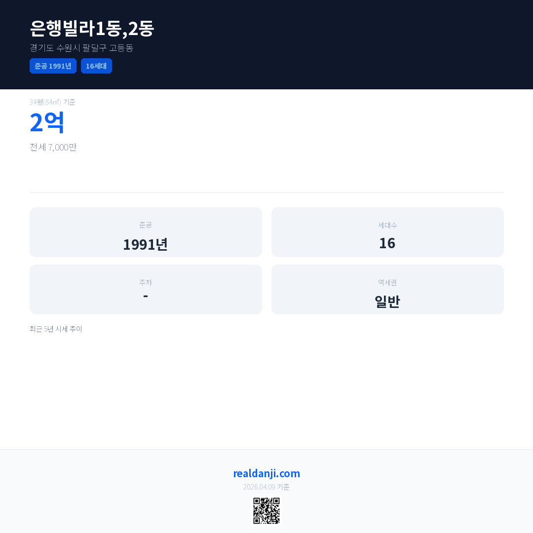 은행빌라1동,2동 최근 거래가는 2억입니다. (2026-02)