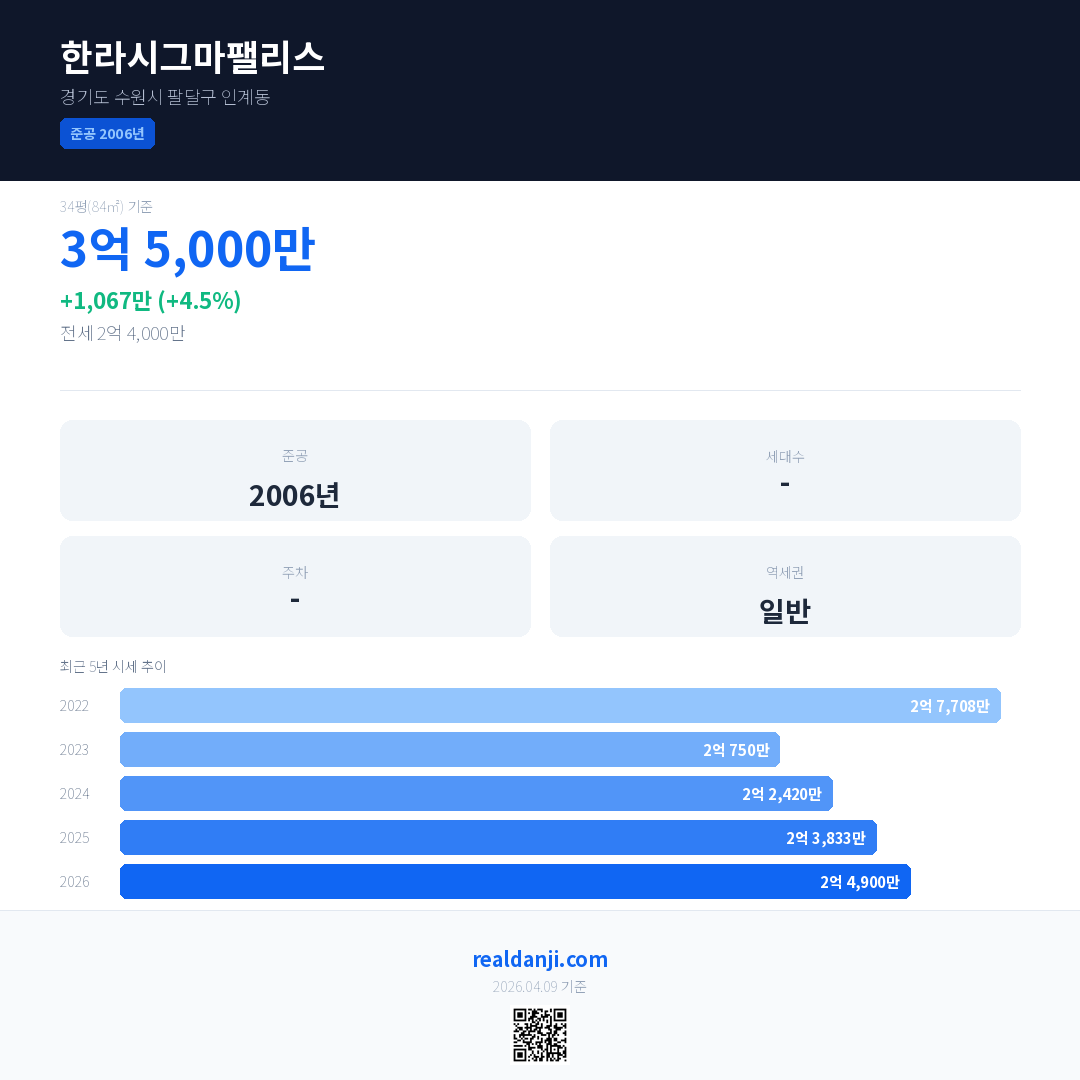 한라시그마팰리스 최근 거래가는 3억 5,000만입니다. (2026-04)