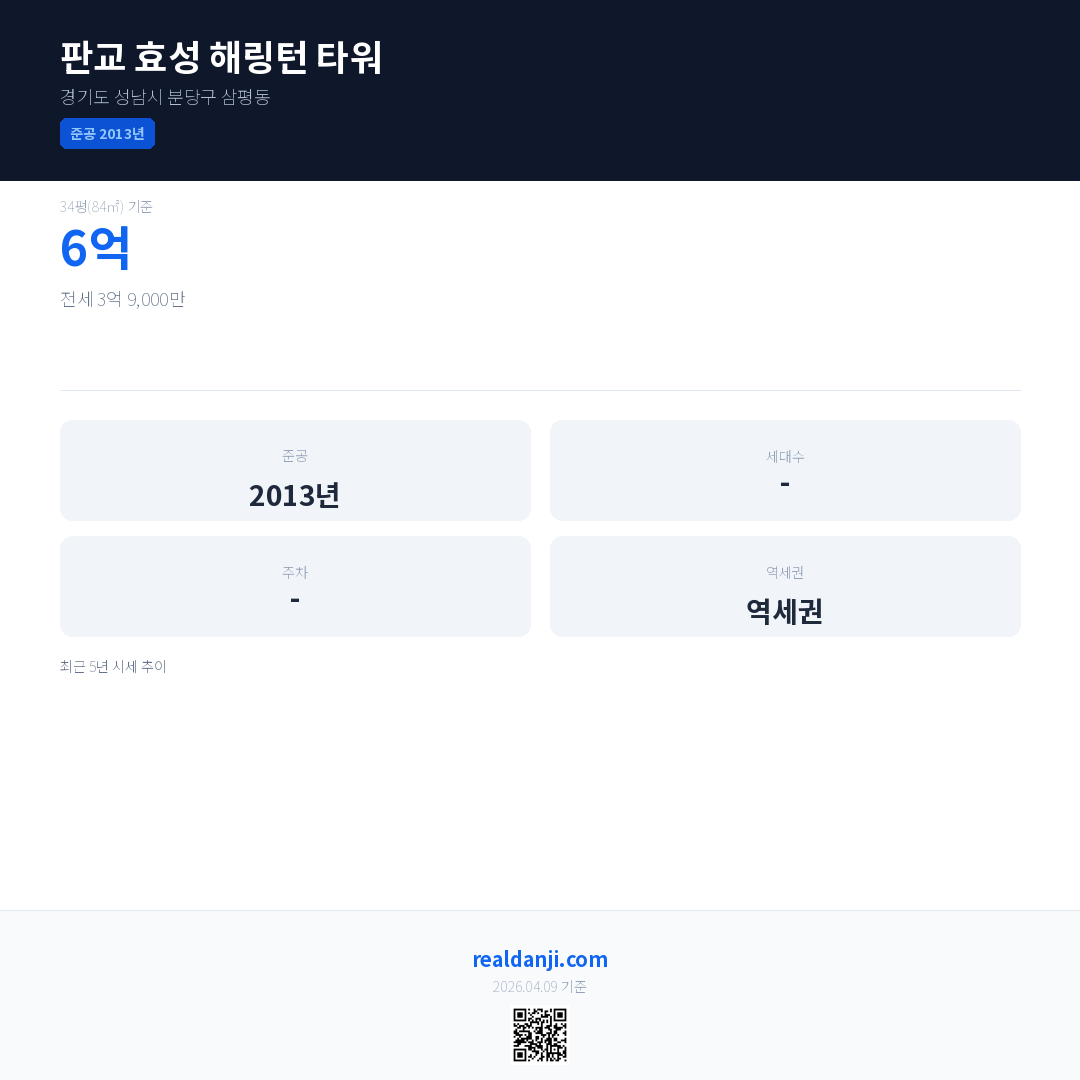 판교 효성 해링턴 타워 최근 거래가는 6억입니다. (2025-11)