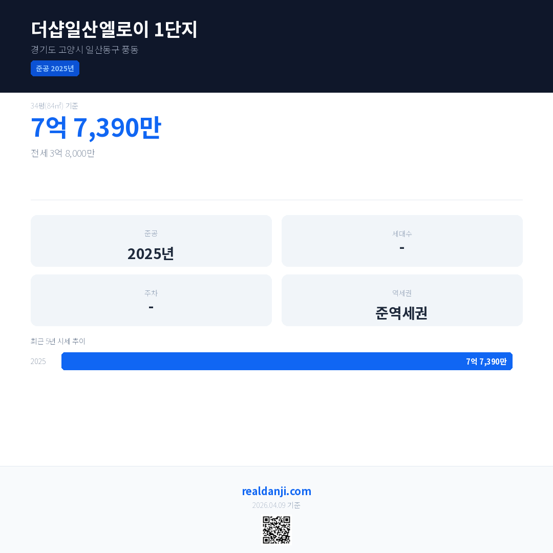 더샵일산엘로이 1단지 최근 거래가는 7억 7,390만입니다. (2025-08)