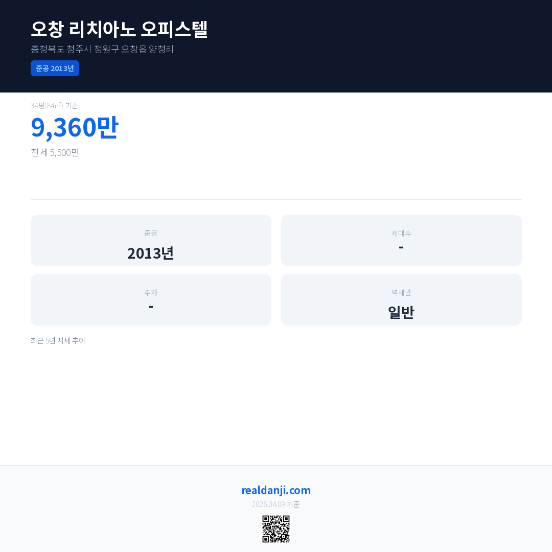 오창 리치아노 오피스텔 최근 거래가는 9,360만입니다. (2026-03)