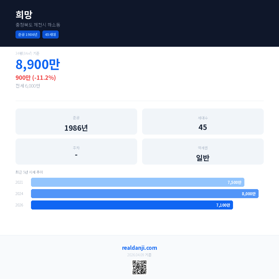 희망 최근 거래가는 8,900만입니다. (2026-02)