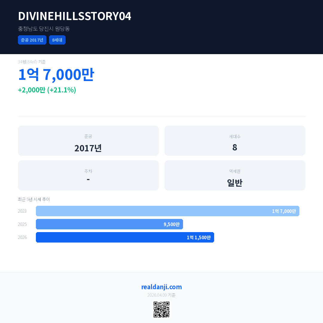 DIVINEHILLSSTORY04 최근 거래가는 1억 7,000만입니다. (2026-02)